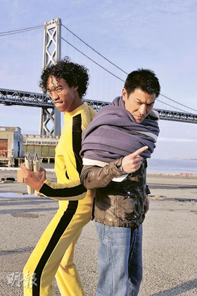 中新网1月9日电 刘德华(华仔)到美国旧金山拍广告,虽然行程保密,但仍被Fans发现行踪。接待大队的当地工作人员是超级李小龙迷,他开工时也穿着李小龙的《死亡游戏》经典造型服装,他更带备双截棍,令华仔感到万分佩服。