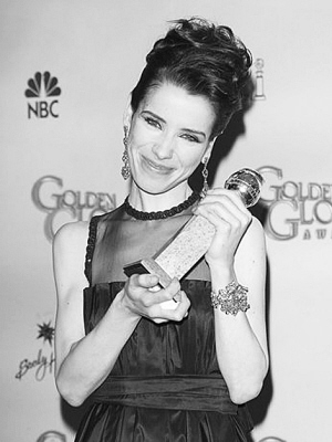 舞台上的奖项一个一个颁发,台下的嘉宾们也不闲着,精致可口的美食是这个大派对的另一个亮点。据今天派对的主厨介绍,整个晚会的饮食花费超过100万美元。除了大量供应的香槟、红酒,酒店准备了高档精美的餐点。开胃菜是加州有机时蔬和蒸梨、白芦笋,配以羊奶酪、枫糖苹果酒色拉酱。主菜是两道菜组合——煎嫩牛排配以绿茶球、亚洲辣腌石斑鱼配特制调味料。甜点是巧克力球淋有机酸奶,形状做得像电影胶片。共1300人享用了今天的美食。记者 沈月明