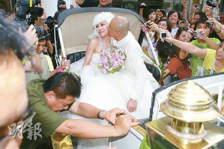 当神父对张卫健说可以亲太太时,一对新人俨如接吻鱼亲不停,足足亲足一分钟。两人签署结婚证书后,大家拥上争相和一对新人合照。约于3时30分半,一对新人乘坐马车离开教堂,张卫健情不自禁再亲吻张茜,闻风而至的影迷均涌入教堂,和明星合照,再加上过百来自内地、香港和菲律宾的传媒,将教堂迫得水泄不通,好不混乱。
