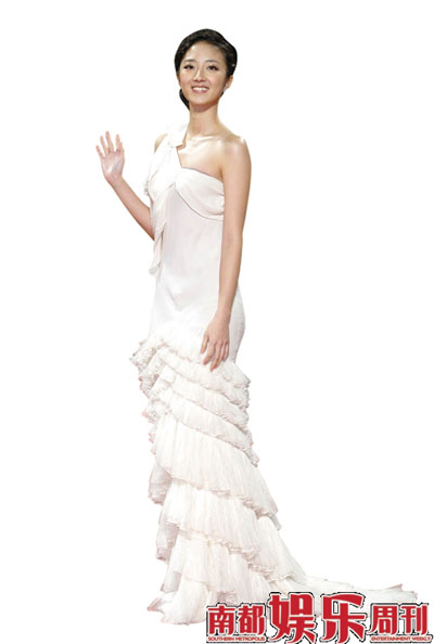今年毫无疑问可以说是林志玲年,随着《赤壁》全球宣传,林志玲把中国风礼服穿得前无古人后无来者,集大成者可谓这一身好友洪品蓁为她量身打造的黄色古典旗袍式礼服,搭配伯爵高级珠宝,一派闺秀风范,综观华语电影圈,她不是小乔还会是谁?