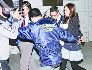 尽管有所准备,被记者围攻的张茆仍然有些不知所措。保安人员问张茆要到什么地方,她却呆呆站在一旁没有回答,任由记者拍照。保安问她要否先到保安室暂避,她立刻回答:“好!”随后在4名保安的保护下躲到了校内的设施管理中心,避开传媒的追访。
