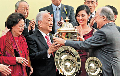此外,身为亨亨前岳父的赌王何鸿燊,昨日巧合地现身马场,与嘉欣撞到。问赌王是否觉得嘉欣肚凸似有喜?他风趣地说:“不知道是不是(有孕)喽!我不会望女仔的肚子。”