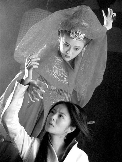 安以轩扮演的赵敏和刘竞扮演的周芷若上演了一场“抢夫大战”。周芷若一瞬间从如花似玉的新娘变成目露凶光的女魔头,打伤了赵敏。饰演张无忌的邓超说:“随着表演的深入,我对张无忌这个人物的体会越来越深。其实他的内心是最纯善的。为救义父放弃结婚,他内心义无反顾,这其实与抢亲的人是否是赵敏无关。”记者 赵楠楠