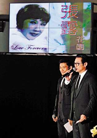追思会在下午6时许正式开始,播出了张露生前许多演出片段。虽然杜德智和杜德伟希望亲友以轻松开心的形式跟母亲告别,但两人担任司仪介绍母亲的生平时,几乎按捺不住流下男儿泪。兄弟俩大赞张露除了是“中国歌后”外,更是个“超级妈咪”。杜德伟说:“无论我多晚收工,她都会煮东西给我吃。我最近一合眼就听到妈咪唱《伶仃小鸟夜夜啼》,好庆幸今日天气好,没下雨。”杜德智则说:“以前每晚收工都会打电话给妈咪买食物给她,这个习惯一时改不掉,前两天收工时我还差点想打电话给妈咪。”