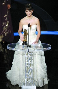 获奖名单最终由斯温顿宣读,佩内洛普拿下了第一个颁出的奖项——最佳女配角,这也意味着此前网上流传的奖项名单是假的。因为外泄的奖项名单显示,艾米·亚当斯才是获奖人。上台领奖的佩内洛普仍操一口带有西班牙口音的英语,她甚至笑言“45秒感言时间太短了,担心说不完长长的感谢名单”,“我要感谢导演给自己机会演出这样一个角色,感谢父母和亲朋好友。 ”说着说着,佩内洛普一度哽咽,她也同时感叹西班牙语已成为国际化语言,并用自己的母语又说了一段感言。