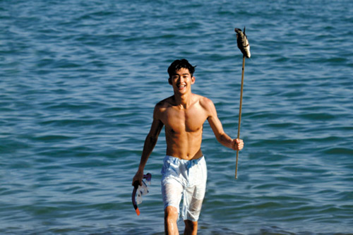 号称“内地版《流星花园》”的《流星雨》剧组昨天曝光了一组沙滩照,照片里是众主演在厦门某酒店拍摄的一场海边度假野炊的群戏。照片曝光后,张翰(饰慕容云海)捕鱼上岸的“出浴”湿身照饱受网友诟病。在这组所谓的“性感剧照”中,不仅男主角没有宣传中的“壮硕的胸肌和纹路鲜明的腹肌”,其愣头愣脑的神情和夸张的肢体语言更被不少网友戏称为“少年闰土”和“黑土进城”。相比之下,身边的“草根”女主人公楚雨荨倒更显洋气。