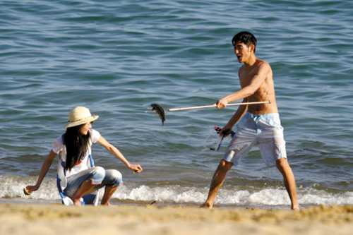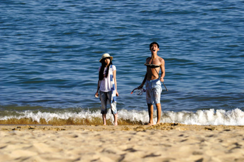 《流星雨》最新剧照的内容包括了众人集体野炊、慕容云海为楚雨荨潜海捕鱼、端木磊在沙滩上与楚雨荨对白,以及众人一起打沙滩排球等多个场面,但效果却被网友归结为一个字———“土”。相比之下,韩剧《花样男子》中李民浩赤裸上身在海滩飞奔的情景,却让网友普遍认为,他蓬松的卷发在湛蓝的海水前飞舞的样子极为性感。据《花样男子》剧组工作人员透露,该场景中包括了男女主角的首场感情戏,是剧情中的关键部分,所以剧组专门前往海外进行拍摄。除此之外,澳门的威尼斯人(度假村)酒店也是该剧外景地之一。