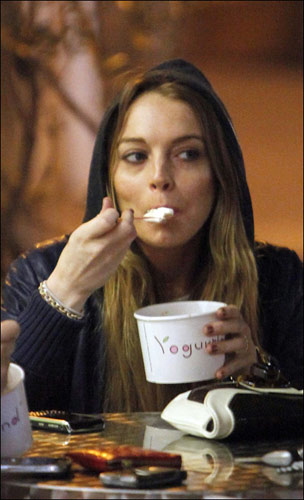 林赛·罗韩吃冰激淋 穿连帽衫俏皮可爱(图)(3)——中新网