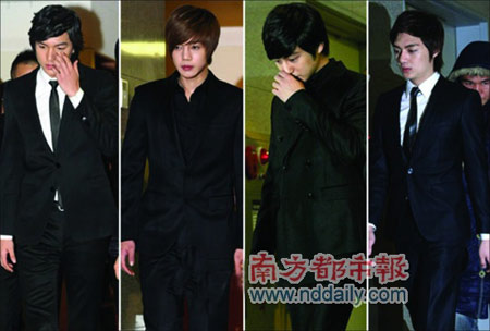1月21日金贤重遭遇交通事故,身体未受伤但精神受到惊吓;隔日,金俊也遭遇交通意外,所幸无伤;1月26日李民浩的经纪人在送李民浩回家时与其他车辆相撞,已下了车的李民浩躲过一劫;2月1日及9日,金范连续遭遇两次交通事故,后一次导致他脚趾受伤。至此,韩版F4均与事故“结缘”。(记者 陆欣 陈弋弋)