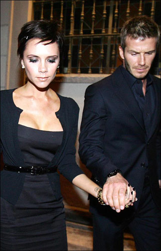 高出镜率夫妻贝克汉姆和维多利亚·贝克汉姆昨日(3月9日)二人手牵手浪漫外出就餐。当二人发现有狗仔队跟拍时,显然很高兴。当晚小贝身穿黑色休闲西装,酷感十足,十分的帅气。贝嫂则脱去了自己雷人的军官服和贵妇至极的皮草大衣,换上了庄重得体的黑色白领服装,低胸设计相当性感,看来有小贝在身边的贝嫂还算不错。