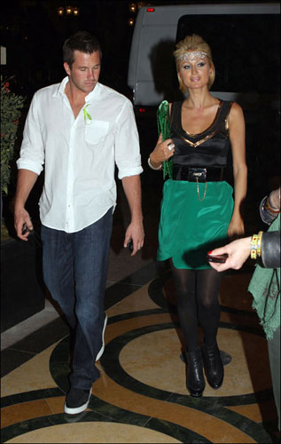 希尔顿戴钻石头饰 穿绿色短裙酷似小精灵(组图)(3)——中新网