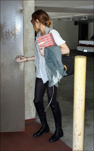 林赛黑色裤袜高筒靴 盘发更显身材修长(组图)(4)——中新网