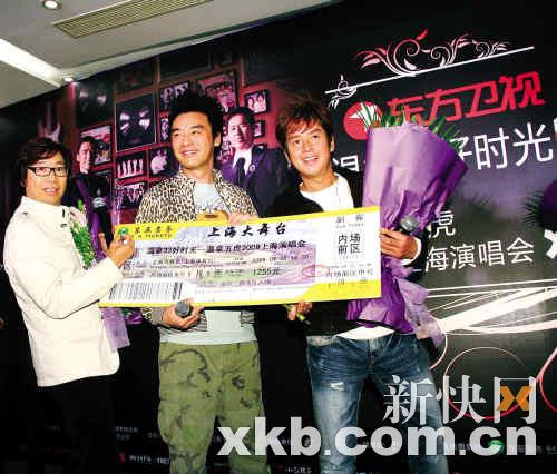昨日,温拿五虎中的“三子”谭咏麟、钟镇涛以及彭建新赴沪做客东方卫视《非常记忆》节目,并顺便为温拿乐队4月25日的上海演唱会提前宣传造势。虽然三子都已年过半百,不过依然是“永远25岁”的精神面貌,穿着打扮年轻、时尚,特别是钟镇涛,牛仔裤豹纹上衣、飞机头发型,他们笑称自己的造型是:“之前是 F4学我们的造型,现在我们效法飞轮海的打扮。”