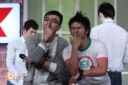全国著名局部模特参加湖南卫视著名脱口秀节目《天天向上》的录制,在模特们换装的时候,主持人汪涵、欧弟为模特当起“更衣帘”,并不断做出搞怪的表情,笑翻全场。于慧娜 摄