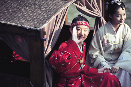 在这个问题上,造型设计叶锦添可算是有先见之明,据说给小宝玉设计的戏服,里面的缝正好够他长个儿。但是即便如此,于小彤还是露着脚踝!