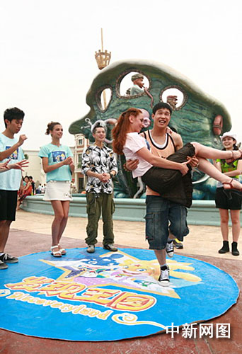 据该公园负责人介绍,这组照片是去年7月,主题公园2周年之际,特聘《乡村爱情2》剧组拍摄4集以家庭和情侣为题材的《欢乐集结号》,目的是为倡导 “发现亲情、发现友情、发现爱情——发现快乐、发现王国”的公园主题。