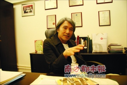 25日晚上九点钟在写字楼找到星爷。是他约在这个地点见面的,他和同事开会还没结束,但为了这次是非,不得不见一见记者。当记者在他的办公室见到他时,星爷一面倦容,满面须根,问他是否受到打击,情绪落寞,不修边幅?