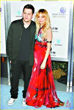 虽然小腹已经隆起,但当晚的妮可·里奇依然明艳动人,身穿丝绸质地的波西米亚风格长裙,配上金色的卷发,时尚又不失高贵