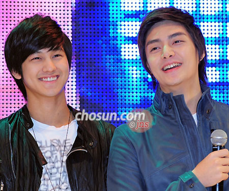 中新网3月30日电 据朝鲜日报报道,纪念热门电视剧《花样男子》原声专辑上市的粉丝见面会于3月28日晚6时在首尔龙山I Park购物中心舞台上举行。当天,《花样男子》F4成员之一金泛和金俊一同亮相,格外受关注。