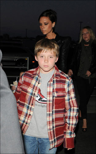 图文:辣妈维多利亚 带3个儿子为小贝助阵