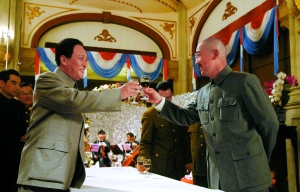 虽只有一场戏、三句台词,但身着深蓝色军装的李连杰依然一丝不苟地拍了不下5条。据李连杰介绍,他扮演的陈绍宽原是国民党海军上将,在抗日战争中立下汗马功劳,但不愿参加内战,“中国人打中国人?这事我做不得”,最后向蒋介石递交辞呈,“卸甲归田,回福建养老去”。李连杰片酬高达上千万美元,但零片酬参与该片一方面是感谢中影集团长期对壹基金的支持,另外一方面他也认为“陈绍宽反战挺像我的,我也是个爱好和平的人。”另外,他还透露《建国大业》上映后,每张电影票将有1分钱进入壹基金。