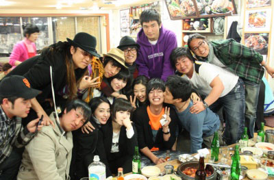 热播电视剧《花样男子》的封镜晚宴照片被公开引人关注。演员李敏贞12日在自己的迷你小窝公开了演员和摄制人员一起拍的照片。该照片是李民浩、具惠善、李敏贞三人在一餐馆和剧组工作人员欢聚的合影,宛似一个团结的大家庭,大家都很开心。一名男摄制人员兴奋之时亲吻李民浩脸颊的场面令民浩有些尴尬。他就紧闭眼睛做出逗趣的表情。