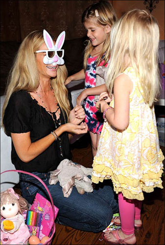 丹妮丝·理查兹,邦女郎变身可爱小兔兔,逗得两位小朋友合不拢嘴,这天他们真的很开心哦。