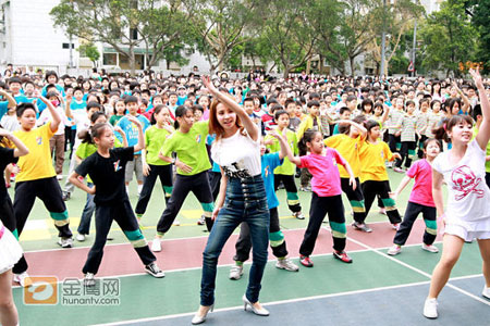昨日(16日)一早,蔡依林特别前进台北市某小学,带领小朋友齐跳新歌《愈慢愈美丽》的新舞步。针对日前经纪人透露蔡依林这几年因为忙着工作,身上带有不少病痛,下半年可能会让她好好休息,她低调表示“一切配合公司安排”。