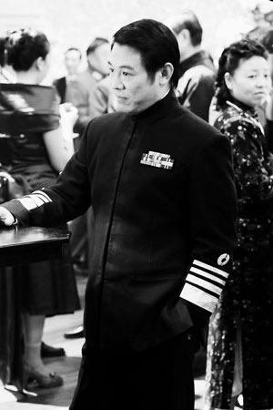 李连杰饰演的国民党海军一级上将陈绍宽近日在媒体上曝光。他身着一套深海蓝色的中山装式的海军礼服,袖子上带有明黄色的军官袖标,没有肩章,胸口则别着彩色的军章。执行导演说,李连杰这次是超级“龙套”,在片中只有3句对白。