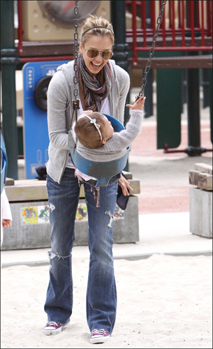 组图:休闲时光 阿尔芭带爱女公园玩游戏(3)