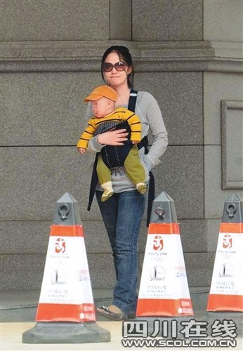 去年8月,媒体曾拍到了周韵再度怀孕的照片;11月初姜文被人拍到在香港办理婴儿出生证明,从而证实周韵已再次顺利分娩。春节后姜文一家已搬了新公寓,周韵天天操持家务带孩子,当上了不折不扣的“家庭主妇”了。近日,周韵戴着墨镜现身自家公寓大门口,胸前挂着一个婴儿兜兜,兜兜里“装”着一个婴儿。从照片上看,男婴四五个月大,衣着醒目,胖嘟嘟的,有点小大人的样子,他的五官圆润,乖巧可爱,与周韵非常像,而一对眼睛显然得自姜文的“遗传”。