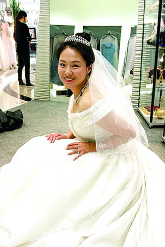 图文:“左蓝”沈傲君待嫁 拍戏间隙试婚纱