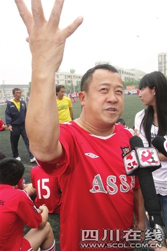 昨日下午,位于地震重灾区的什邡中学体育场热闹非凡。一场由谭咏麟率领的香港明星足球队,与孙楠率领的梦舟明星足球队之间的足球赛正式开锣。曾志伟、成奎安、罗家英、陈百祥、何家劲、洪金宝之子洪天明以及白岩松、景岗山,羽泉、文章、吴京、黄格选、陶伟等30多个影视歌明星轮番上阵,争抢激烈。谭咏麟、曾志伟带头当老顽童玩得尽兴,明星们还在比赛间隙穿插文艺表演,让观众无比激动。