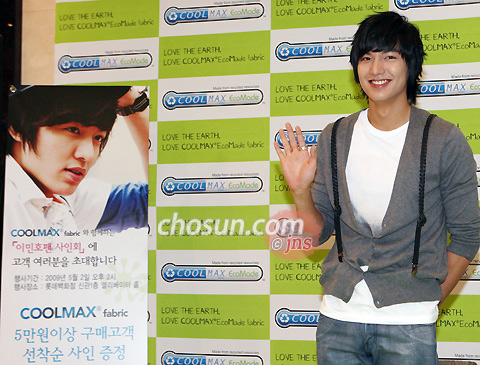 中新网5月4日电 据朝鲜日报日文网报道,韩剧《花样男子》主演李敏镐2日下午在首尔小公洞乐天百货新楼1层举行了粉丝签名会。图为,李敏镐以灿烂的微笑接受拍照。