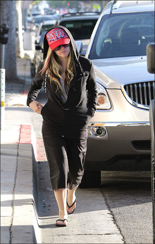 摇滚小恶魔 艾薇儿黑色帽衫配红色棒球帽(组图)(3)