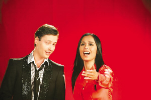 韦唯与维塔斯在录音棚初次见面气氛就相当融洽,尽管两人语言不通,但维塔斯施展的耍宝逗乐功夫让韦唯忍俊不禁。两人面对镜头进入状态很快,尤其是在对唱时更加自然亲近。记者 俞亮鑫