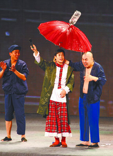 昨晚,《刘老根大舞台》在石家庄体育馆火爆上演,众多赵本山的男女弟子上台演出,小沈阳和他的妻子沈春阳如约携手亮相。当晚,小沈阳表演的节目依然是意料中拿手的几个,场内观众兴致颇高,但是因为节目都是各电视台和网络上反复播出过的,因而缺乏新意。