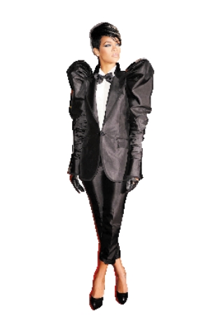 周一晚上,纽约大都会剧院星光熠熠,以一套怪异的大反领黑西装礼服亮相的蕾哈娜,一出现就吸引不少目光,但最夸张的还是西服的加宽加厚的肩垫。她的这一装扮和头上长了鹿角的娜姐,齐齐入选当晚装扮最雷人的明星榜单。