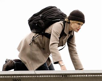 安吉丽娜·茱莉5日拍摄新片《特工盐》,当天她穿着呢子大衣背着旅行包,在油罐车的车顶上演出惊险的场面。
