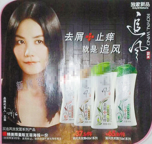6日晚8点,一位自称某著名超市工作人员的网友爆料称,王菲确为一款名叫“追风”的10元廉价洗发水代言。该网友还上传了广告海报的小样为证。