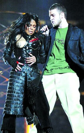 2004年2月,“超级碗”杯橄榄球赛中场休息,歌手珍妮·杰克逊与贾斯汀二重唱结束,贾斯汀的一个舞蹈动作之后,突然将珍妮的右侧胸前衣服撕下,让珍妮的右边乳房全部袒露在全世界观众的面前。事件发生后引起了全美国的震动,贾斯汀、珍妮和电视台都被迫进行了公开道歉。虽然贾斯汀事后称那次事件是因乳罩松脱引起,珍妮仍将“走光事件”归咎于贾斯汀,生气的表示以后不再与贾斯汀说话。不过,贾斯汀近来接受MTV采访时表示:“如果当时她意识到并事先作好保护措施,就不会发生这样荒唐的错误。我只会对事件负上10%的责任。”言下之意,暗指珍妮自己本人没有做好保护措施应负主要责任。(黄敏仪 编译)