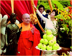中新网10月23日电 据台湾《联合报》报道,昔日巨星林青霞在好友陶敏明等人伴随下和多位贵宾一起参加台湾法鼓山开山一周年活动,并为来迎观音举行开光仪式。