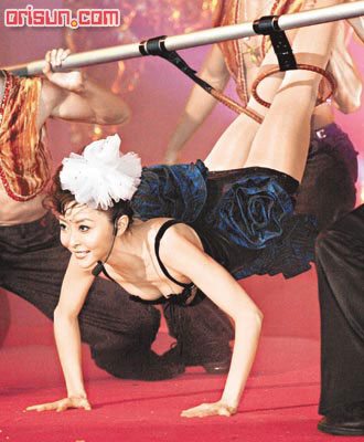 当中以再扮蔡依林表演劲歌热舞的汤盈盈最抢镜,她施展对方的“招牌”一字马及胸降倒吊,身材呼之欲出,哄动全场,事后汤盈盈说:“有这么多观众在那里,真得好紧张,事前已经贴满胶纸,做足安全措施,不担心走光。”被问到会否觉得尴尬,她摇头:“没有,不过最开心就是跟钟丽淇玩瑜伽之后,今晚可以拉到一字马。”那新年有何愿望,她则希望可以学好普通话。