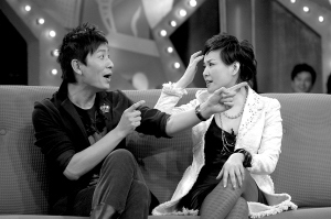 李静、戴军主持《超级访问》,6年来不知道“欺负”了多少圈内艺人。节目中,他们用尽各种手段,让大腕明星们一个个为难、尴尬、流泪。昨天,明星们终于有了“报仇”机会,林依轮、秦海璐趁机让李静和戴军互揭老底。李静说她心中的戴军“很臭美,太爱买衣服,还到处砍价”。戴军透露李静很粗线条,“我泡在杯子里的隐形眼镜,让李静喝下去好几回。”(赵楠楠)