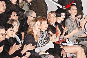 范冰冰以最流行的娃娃头配娃娃裙造型现身,并获得贵宾式的招待,坐在第一排看服装秀。