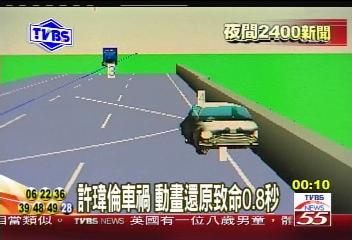 依据许玮伦坐车被往前推了60公尺左右,推算出当时大货车车速已经减慢至6、70公里,但反应时间太短,才会直接追撞,与警方调查结果相吻合,但唯一最关键的问题,究竟两人有没有绑安全带,为什么会失控撞上护栏,还有待助理林怡妏出面说明。