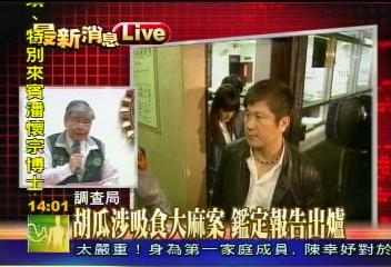 中新网3月28日电 台湾艺人胡瓜、丁柔安涉嫌吸食大麻,台湾““调查局””在检验尿液以及毛发后,今天鉴定报告出炉,“调查局”人员在下午2点钟召开记者会,公布检验结果表示,胡瓜近期没有吸食毒品,不过毛发鉴定呈阳性反应,显示胡瓜半年内曾经吸毒。