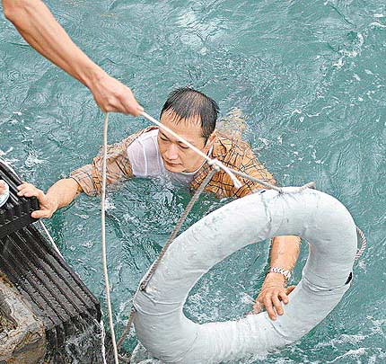 昨日中午约12时,大宇拍摄《和》剧一场堕海戏,剧情指他接获苏玉华电话后赶到码头,岂料对方二话不说,猛力推他心口,令他失足堕海。现场所见,大宇心情已平静,对稿后即开始背对白,更对苏玉华说:“你尽量放大胆推我啦!”表现十分认真。