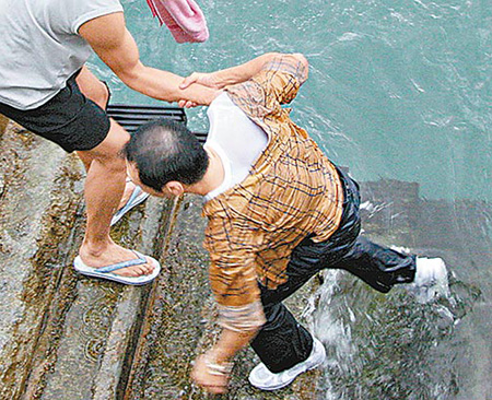然而大宇拍完湿身戏上岸时,M字额和地中海原形毕露,叫人惨不忍睹。