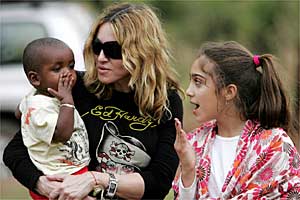 中新网4月20日电 《联合早报》消息,麦当娜(Madonna)大前日带同亲生女儿萝狄丝(Maria Lourdes)和养子大卫(David Banda)到非洲马拉维,视察她有份资助的慈善工作。